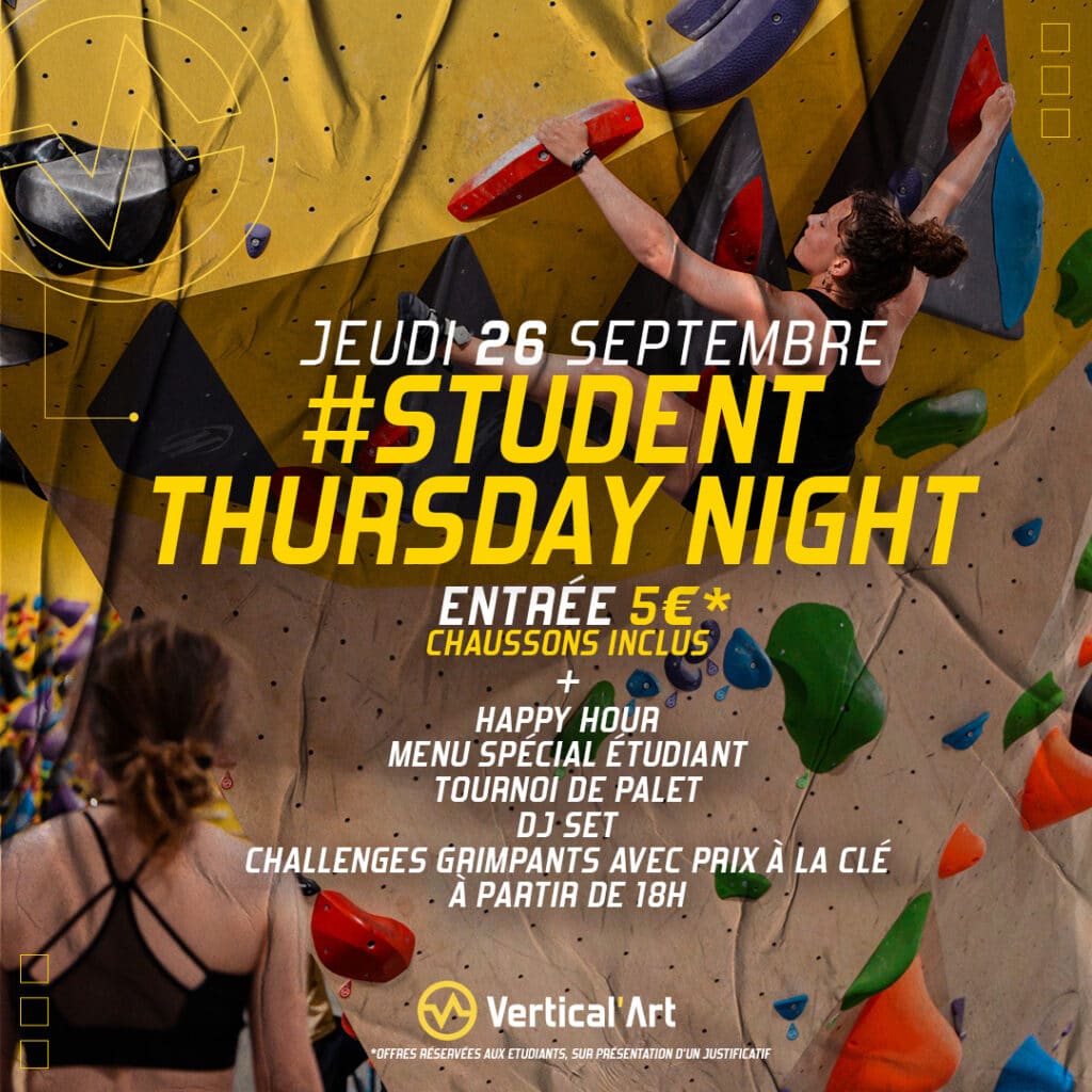 Student Thursday Night à Vertical’Art Brest le 26 septembre