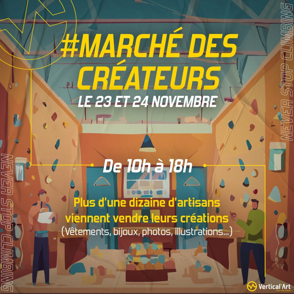Le week-end du 23 et 24 novembre 2024, la salle d’escalade Vertical’Art Brest se transforme en un véritable espace de découvertes artisanales pour accueillir son Marché des Créateurs. Une occasion unique de rencontrer des artisans passionnés et de découvrir des créations locales et originales dans une ambiance conviviale.
