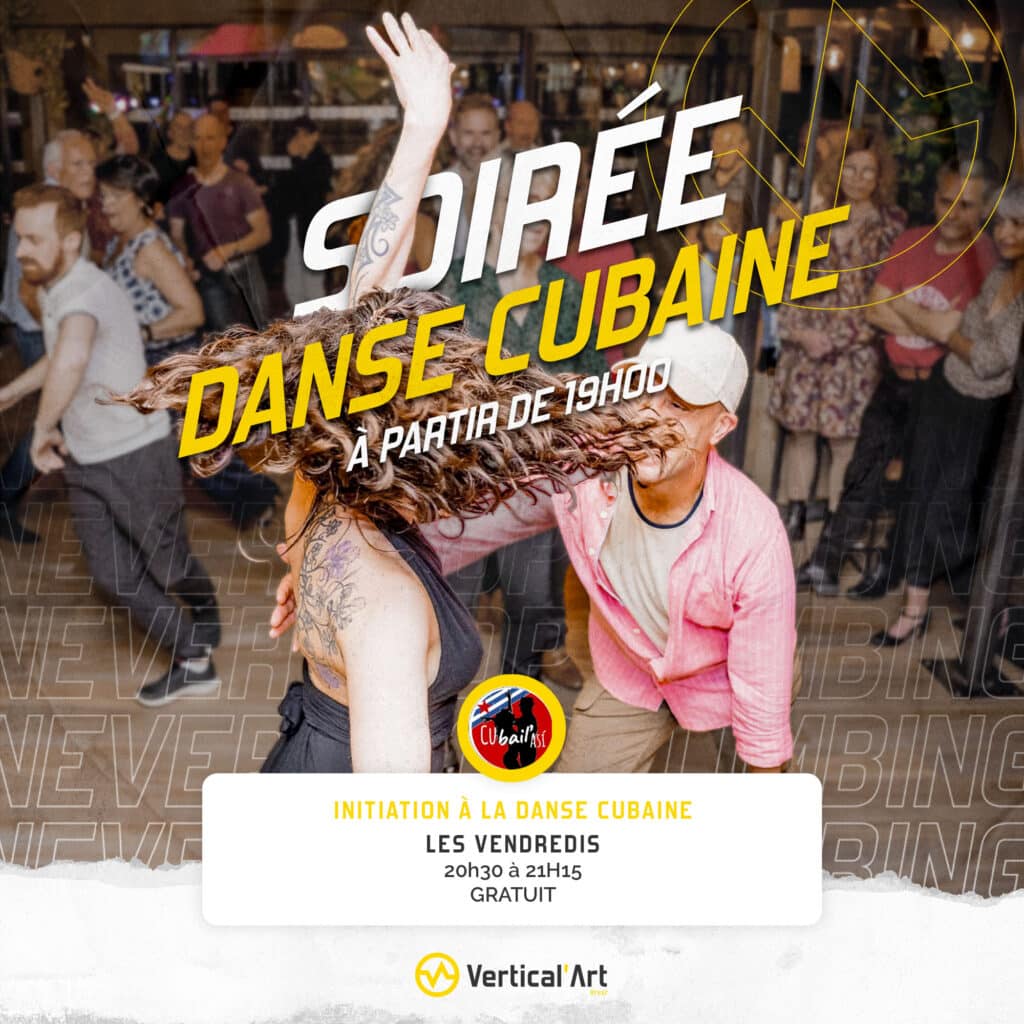 La danse cubaine revient animer vos vendredis à Vertical’Art Brest💃 Les 14 et 28 novembre (puis 12 décembre), on ouvre la piste dès 19h pour une soirée rythmée, accessible et ouverte à toutes et tous.